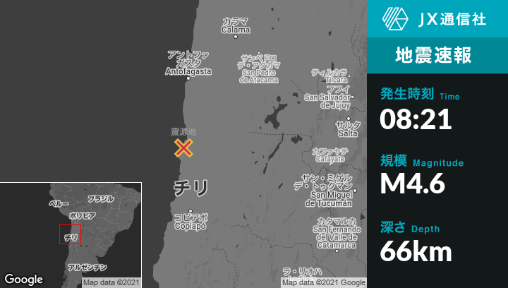 | 震源地 | チリのTaltalから南南西13kmの地点 |