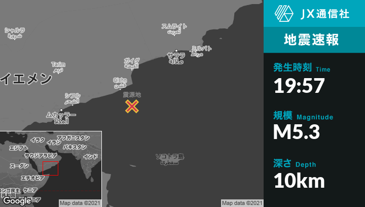 | 震源地 | イエメンのAl Ghayz̧ahから南152kmの地点 |