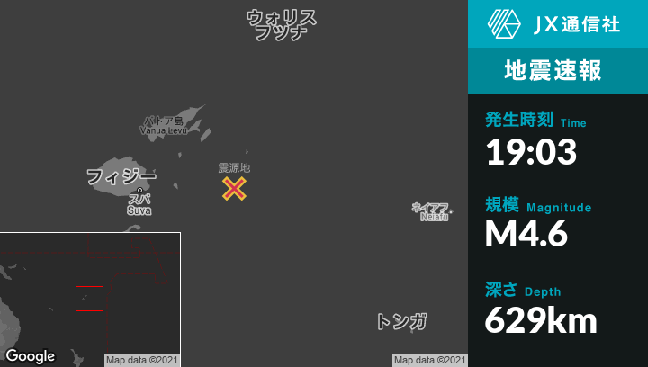 | 震源地 | フィジーのLevukaから東149kmの地点 |