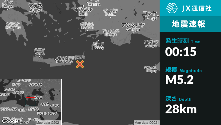 12月27日 00:15頃、ギリシャのFryから南26kmの地点でM5.2の地震がありました。