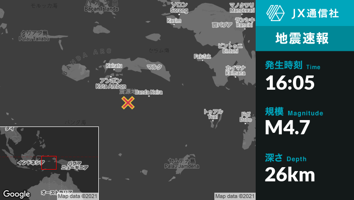 | 震源地 | インドネシアのAmbonから南東140kmの地点 |