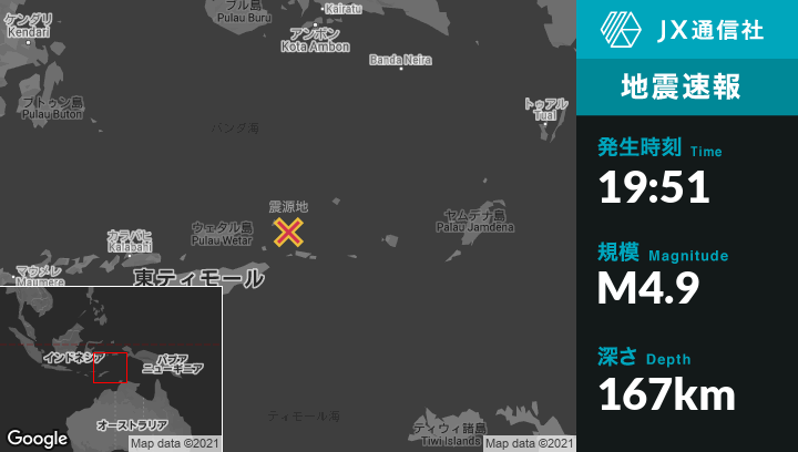 | 震源地 | 東ティモールのLospalosから北東123kmの地点 |