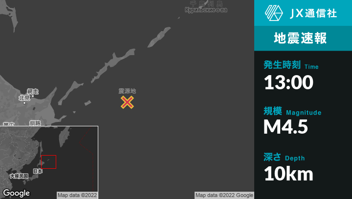 | 震源地 | ロシアのShikotanから東144kmの地点 |