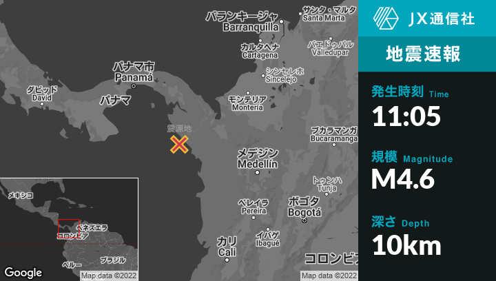 | 震源地 | パナマのJaquéから南南東30kmの地点 |