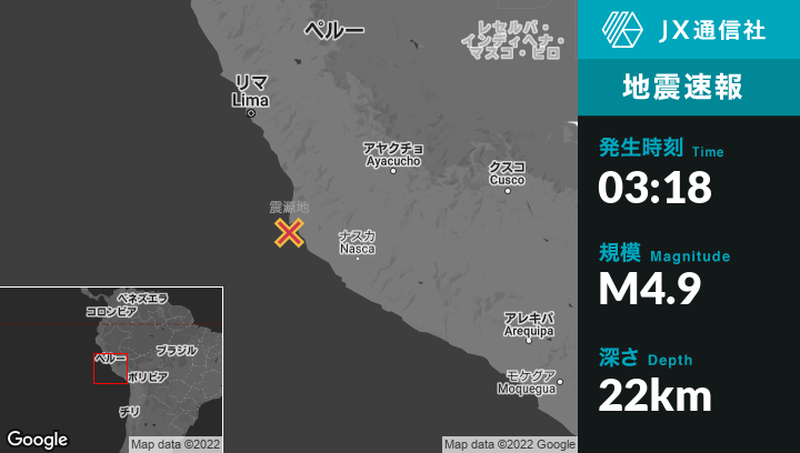 | 震源地 | ペルーのParacasから南40kmの地点 |