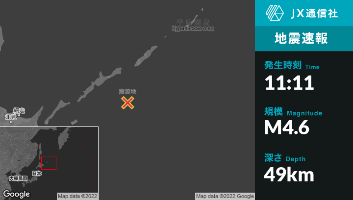 | 震源地 | ロシアのKuril’skから南東127kmの地点 |