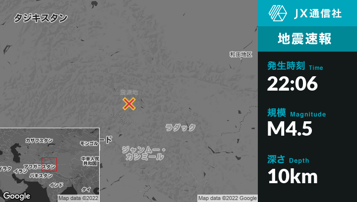 3月20日 22:06頃、パキスタンのGilgitから東南東67kmの地点でM4.5の地震がありました。