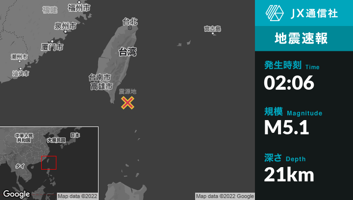 | 震源地 | 台湾のHengchunから東75kmの地点 |