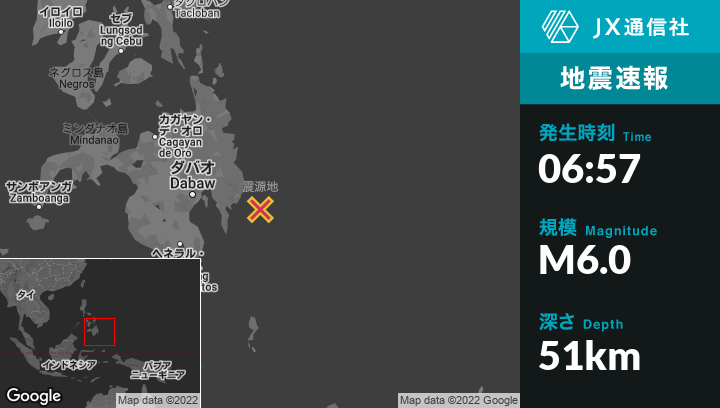 | 震源地 | フィリピンのManayから東南東51kmの地点 |