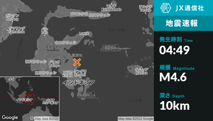 | 震源地 | インドネシアのKendariから北138kmの地点 |