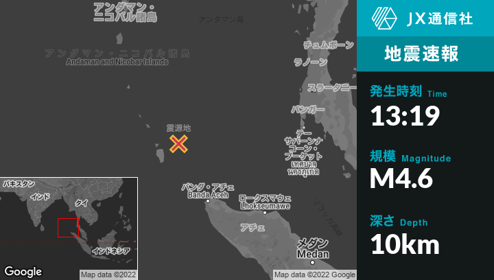 | 震源地 | インドネシアのSabangから北北西206kmの地点 |