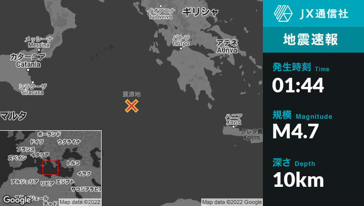 | 震源地 | ギリシャのLithakiáから南西187kmの地点 |