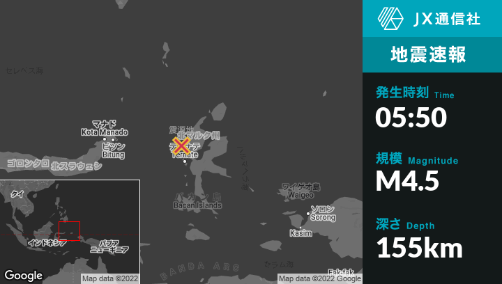 | 震源地 | インドネシアのTernateから北67kmの地点 |
