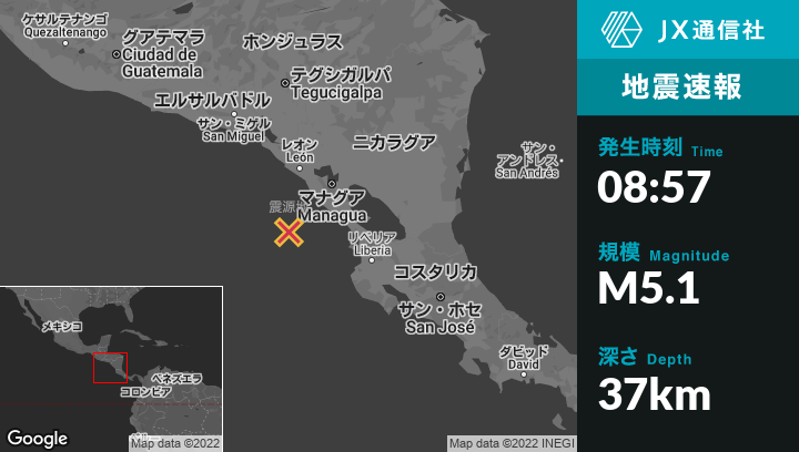 | 震源地 | ニカラグアのMasachapaから南西84kmの地点 |