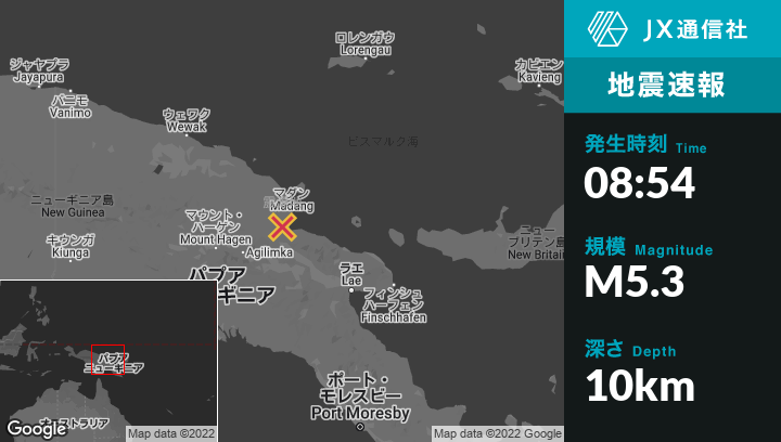 | 震源地 | パプアニューギニアのMadangから西南西23kmの地点 |