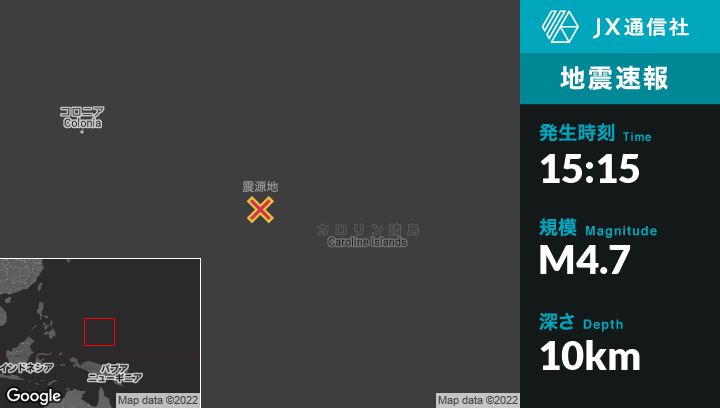| 震源地 | ミクロネシアのFaisから南東260kmの地点 |