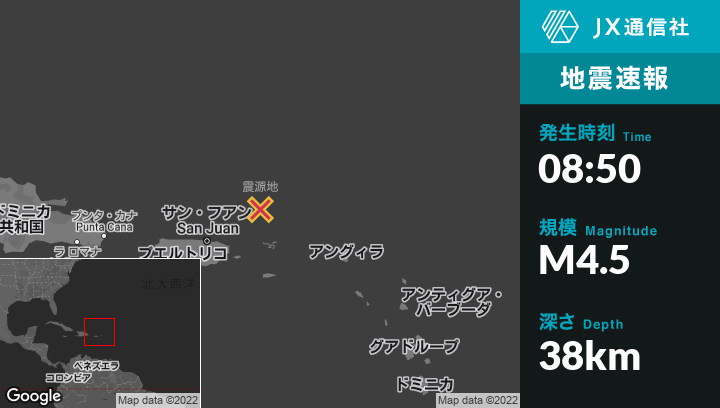 | 震源地 | アメリカ領バージン諸島のCharlotte Amalieから北98kmの地点 |