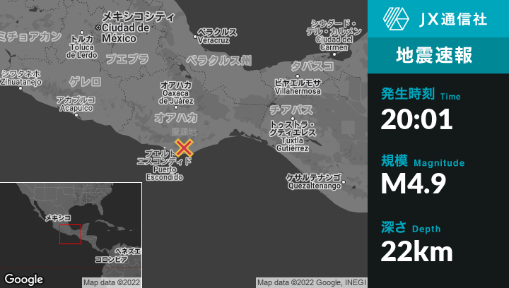 | 震源地 | メキシコのLos Naranjos Esquipulasから北西1kmの地点 |