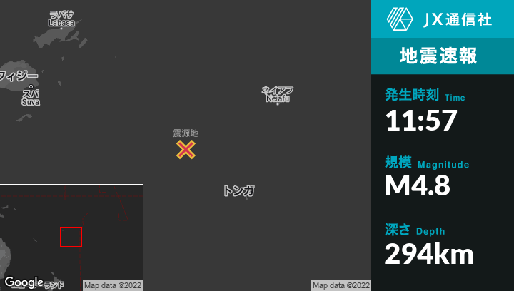 | 震源地 | トンガのNuku‘alofaから北西219kmの地点 |