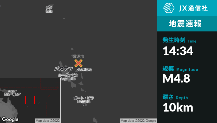 | 震源地 | バヌアツのPort-Olryから東北東100kmの地点 |