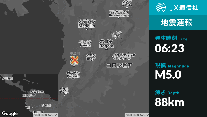 | 震源地 | コロンビアのDarienから北10kmの地点 |