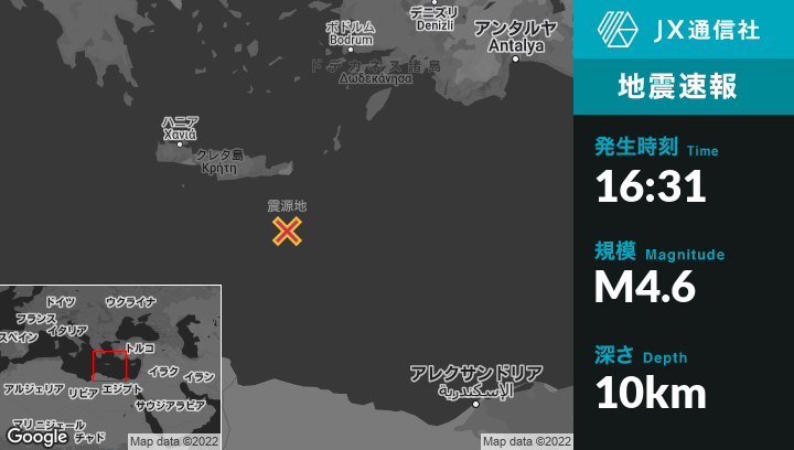| 震源地 | ギリシャのIerápetraから南南東97kmの地点 |