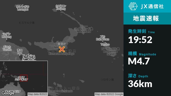 | 震源地 | パプアニューギニアのKimbeから南東99kmの地点 |