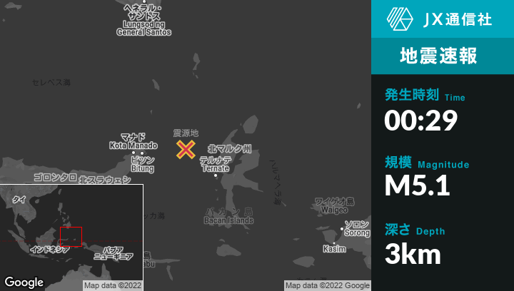 | 震源地 | インドネシアのTernateから北西143kmの地点 |