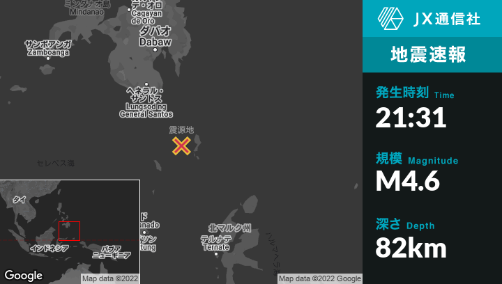 | 震源地 | フィリピンのSaranganiから南東151kmの地点 |