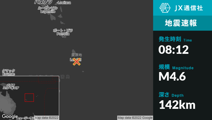 5月21日 08:12頃、バヌアツのIsangelから北北東19kmの地点でM4.6の地震がありました。