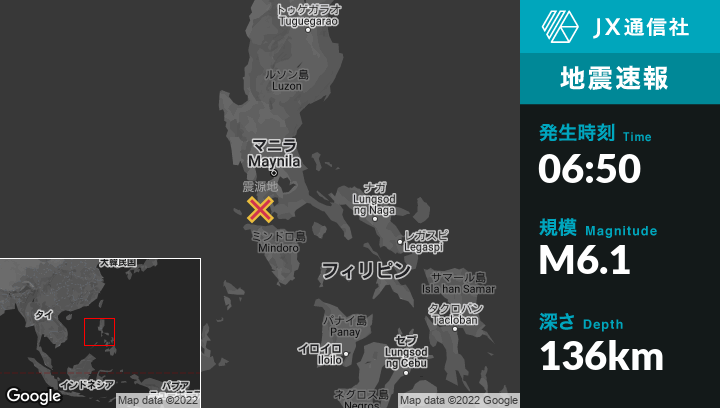 | 震源地 | フィリピンのBungahanから東北東1kmの地点 |