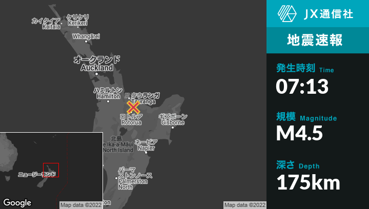 | 震源地 | ニュージーランドのMaketuから南西16kmの地点 |