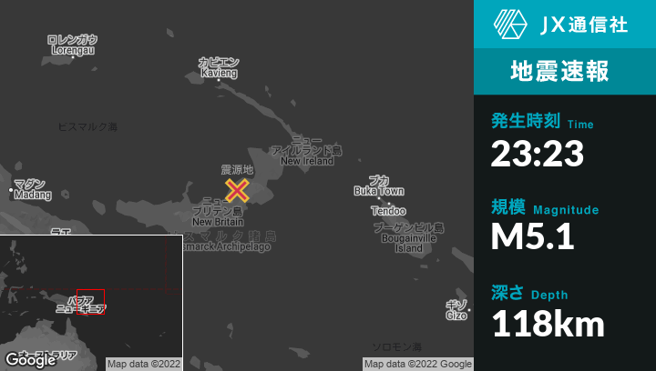 | 震源地 | パプアニューギニアのKimbeから東北東131kmの地点 |