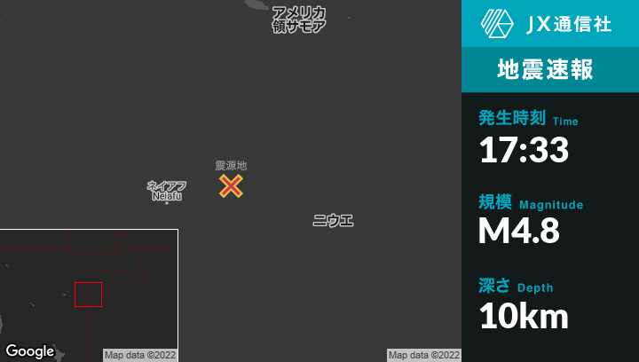 7月02日 17:33頃、トンガのNeiafuから東北東177kmの地点でM4.8の地震がありました。