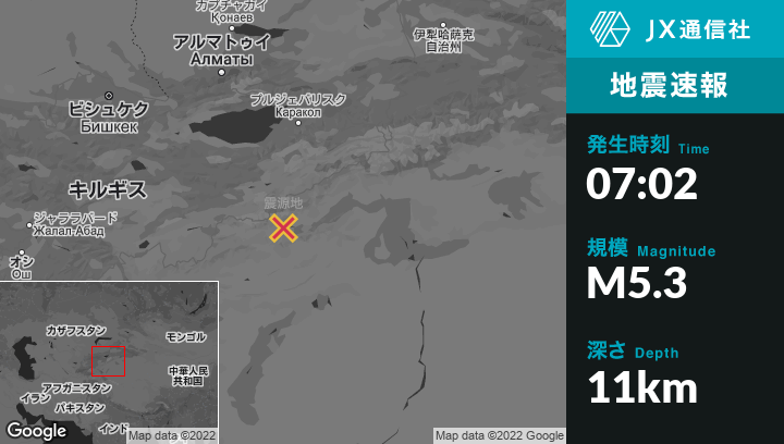 | 震源地 | キルギスタンのKadzhi-Sayから南南東149kmの地点 |