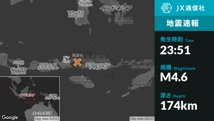 | 震源地 | インドネシアのKomodoから北北東39kmの地点 |