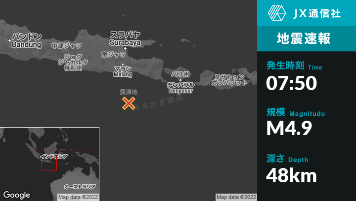 | 震源地 | インドネシアのDampitから南150kmの地点 |