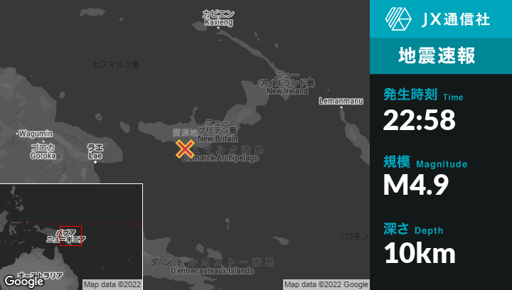 | 震源地 | パプアニューギニアのKandrianから東24kmの地点 |