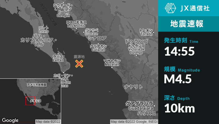 | 震源地 | メキシコのLa Riveraから東81kmの地点 |