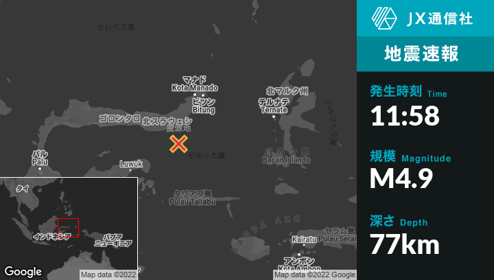 | 震源地 | インドネシアのGorontaloから東南東152kmの地点 |