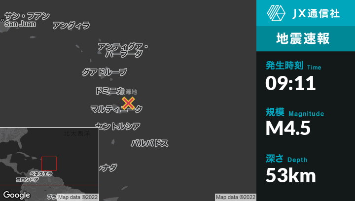 | 震源地 | マルティニークのLa Trinitéから東北東57kmの地点 |
