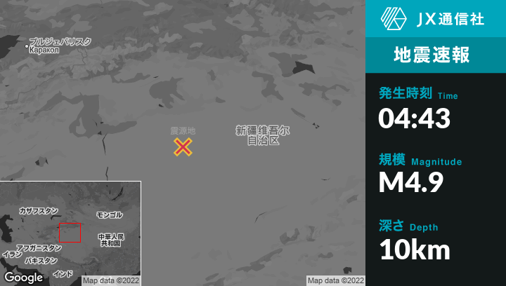 7月18日 04:43頃、中国のKuqaから南172kmの地点でM4.9の地震がありました。