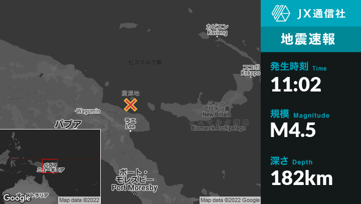 | 震源地 | パプアニューギニアのMadangから東136kmの地点 |