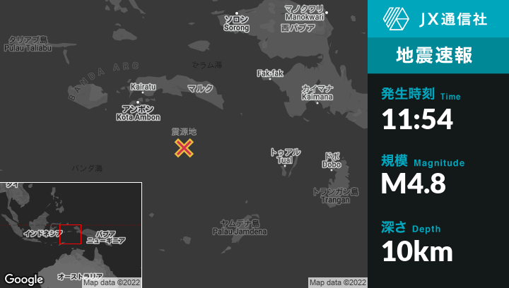 | 震源地 | インドネシアのAmahaiから南南東192kmの地点 |