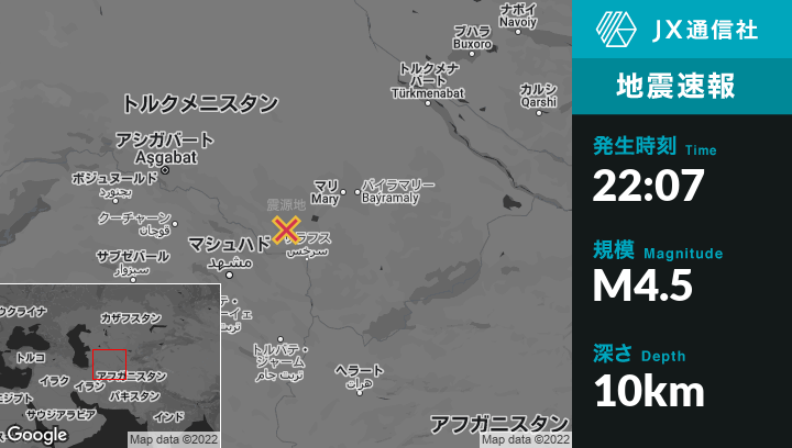 | 震源地 | トルクメニスタンのTejenから南南東35kmの地点 |