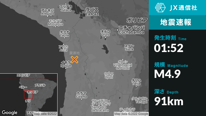 | 震源地 | チリのIquiqueから北東106kmの地点 |