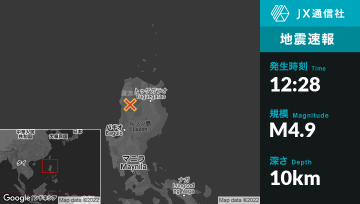 | 震源地 | フィリピンのDoloresから東南東14kmの地点 |