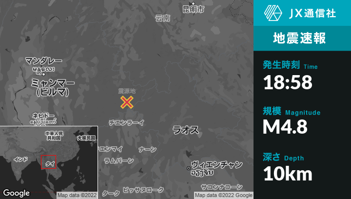 | 震源地 | ミャンマーのTachilekから北50kmの地点 |
