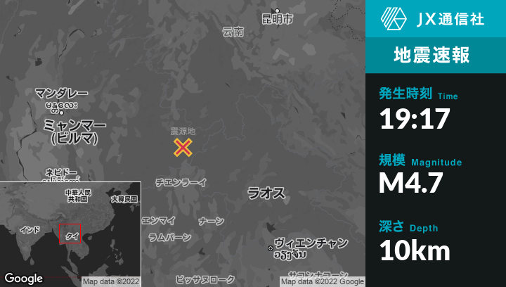 | 震源地 | ミャンマーのKēng Tungから南63kmの地点 |