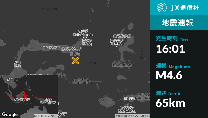 | 震源地 | インドネシアのGorontaloから東南東151kmの地点 |
